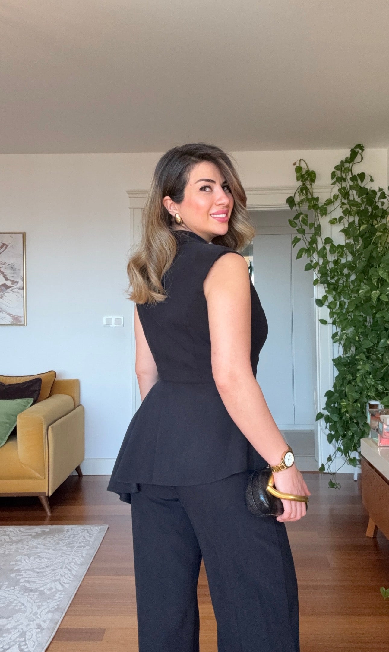You can attend evening events by pairing it with gold-tone jewelry and a minimal clutch, as seen in the visuals, or elevate your office style with high heels.