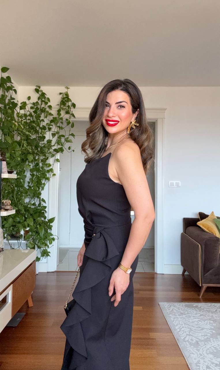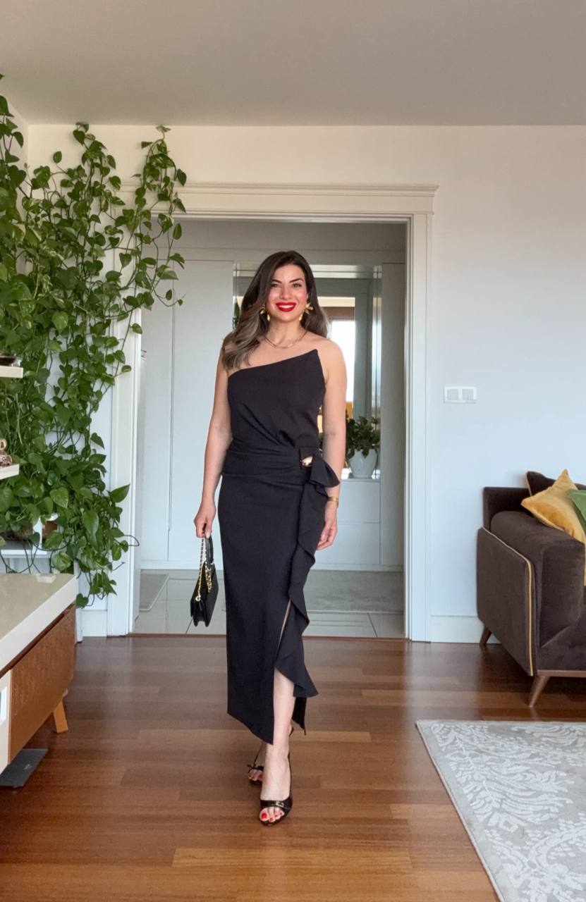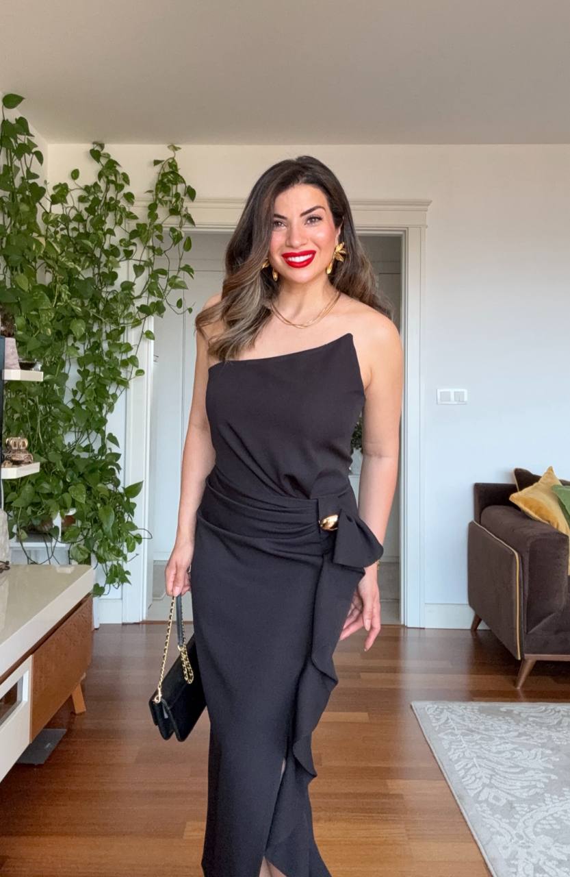With its classic black tone, this striking dress is perfect for evening events, special celebrations, cocktail parties, and stylish occasions where you want to stand out.