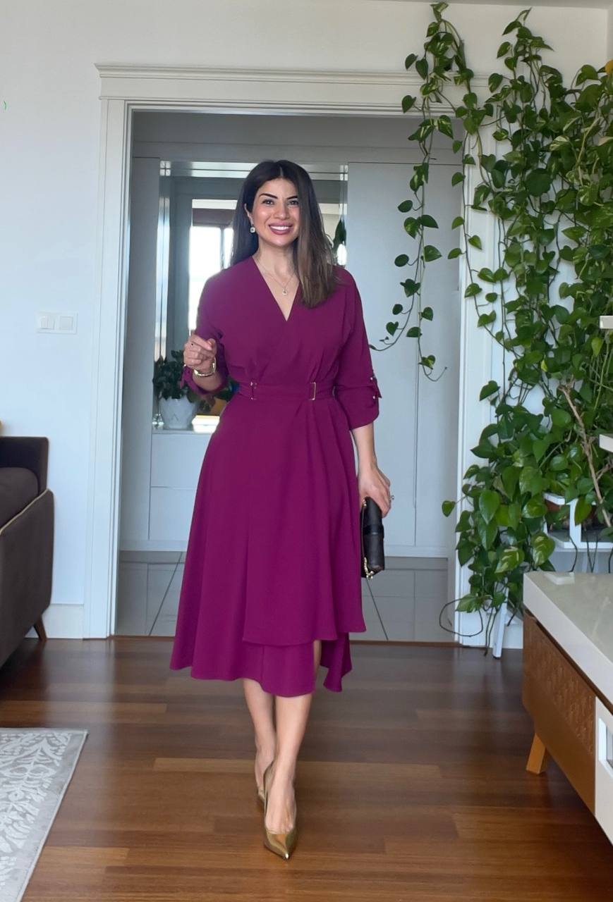 Plum Belted Midi Dress – Elegant, Feminine & Effortlessly Chic