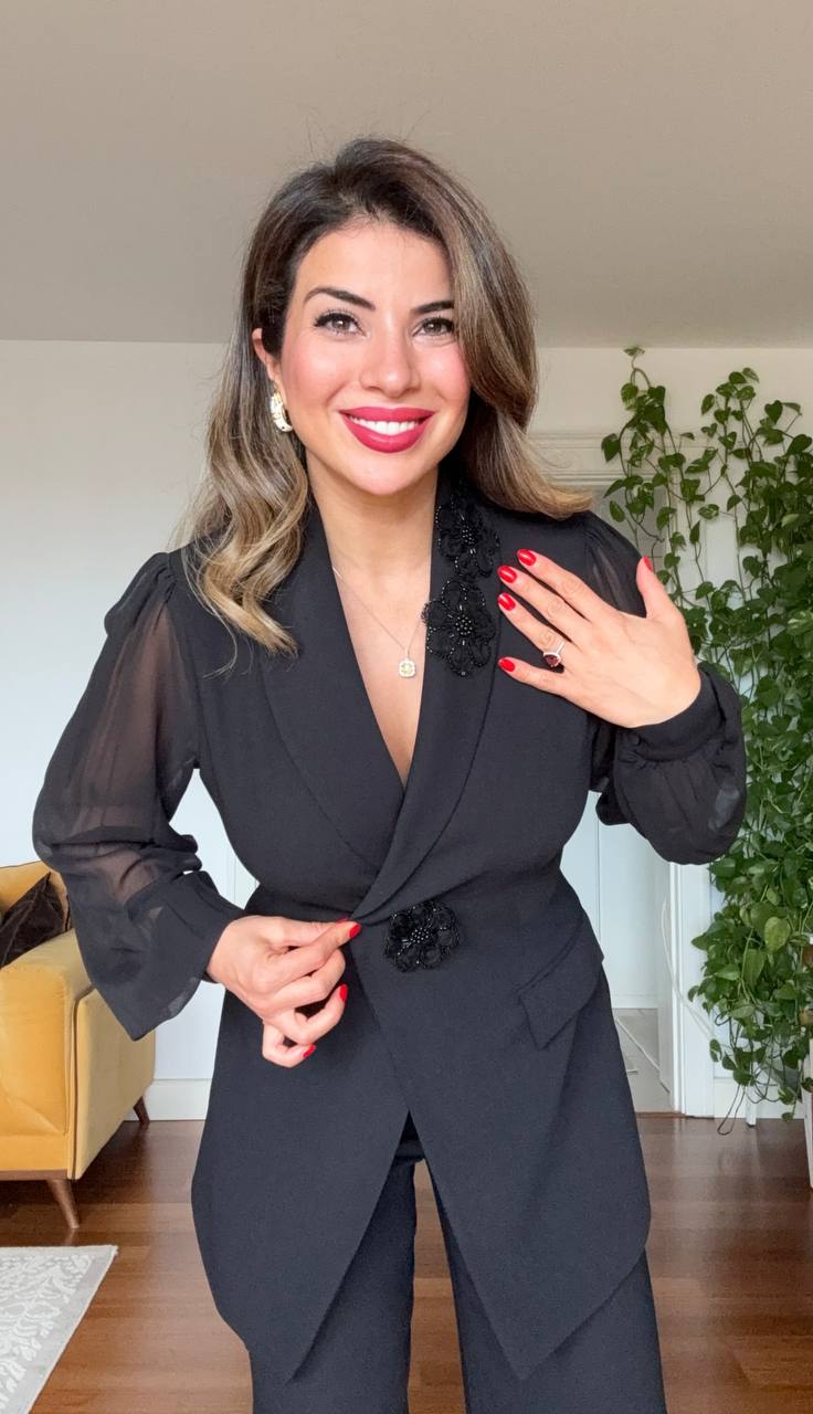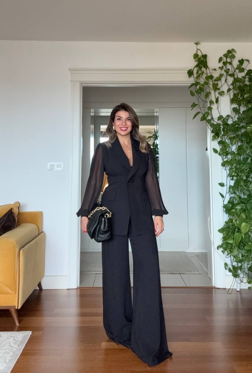 Combining elegance with modern style, the Collar Floral Detail Elegant Suit – Black will highlight your look on every occasion, from special events to business meetings.