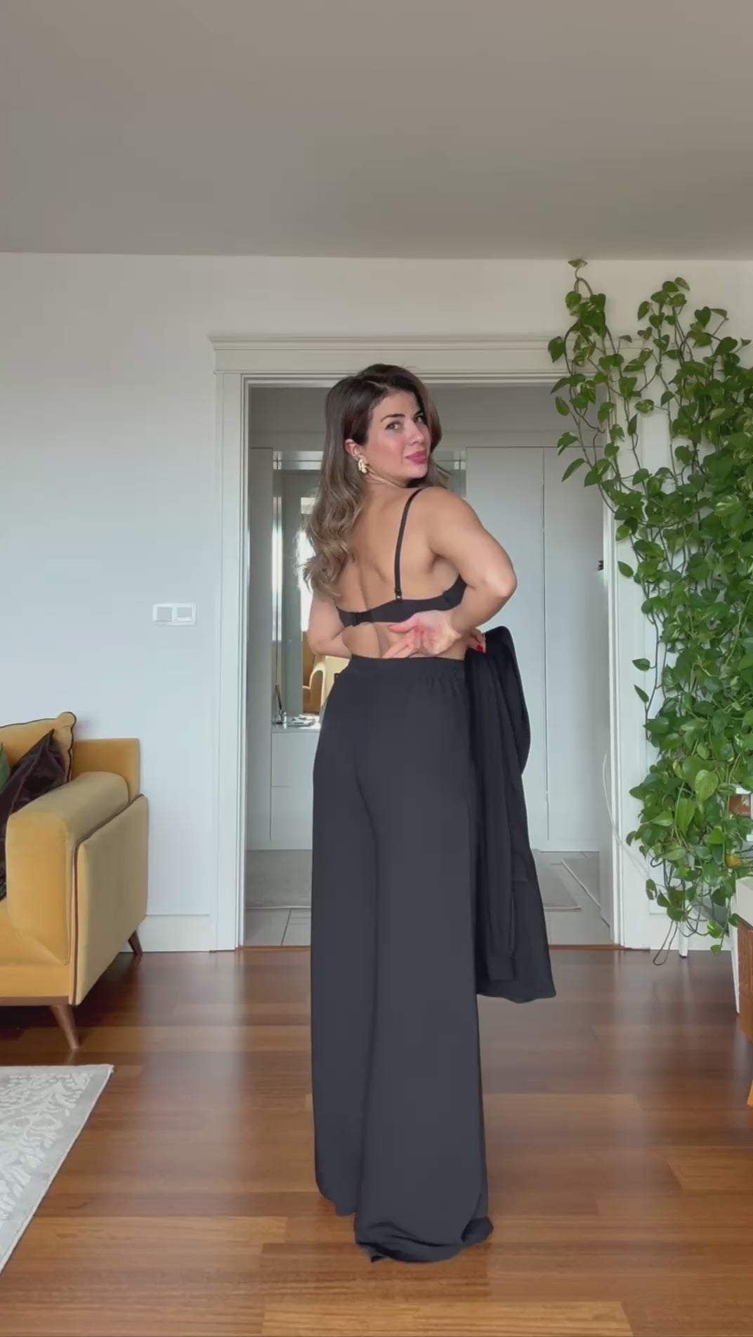 • Trousers: High-waisted, wide-leg cut for both comfort and an elongated, graceful silhouette.