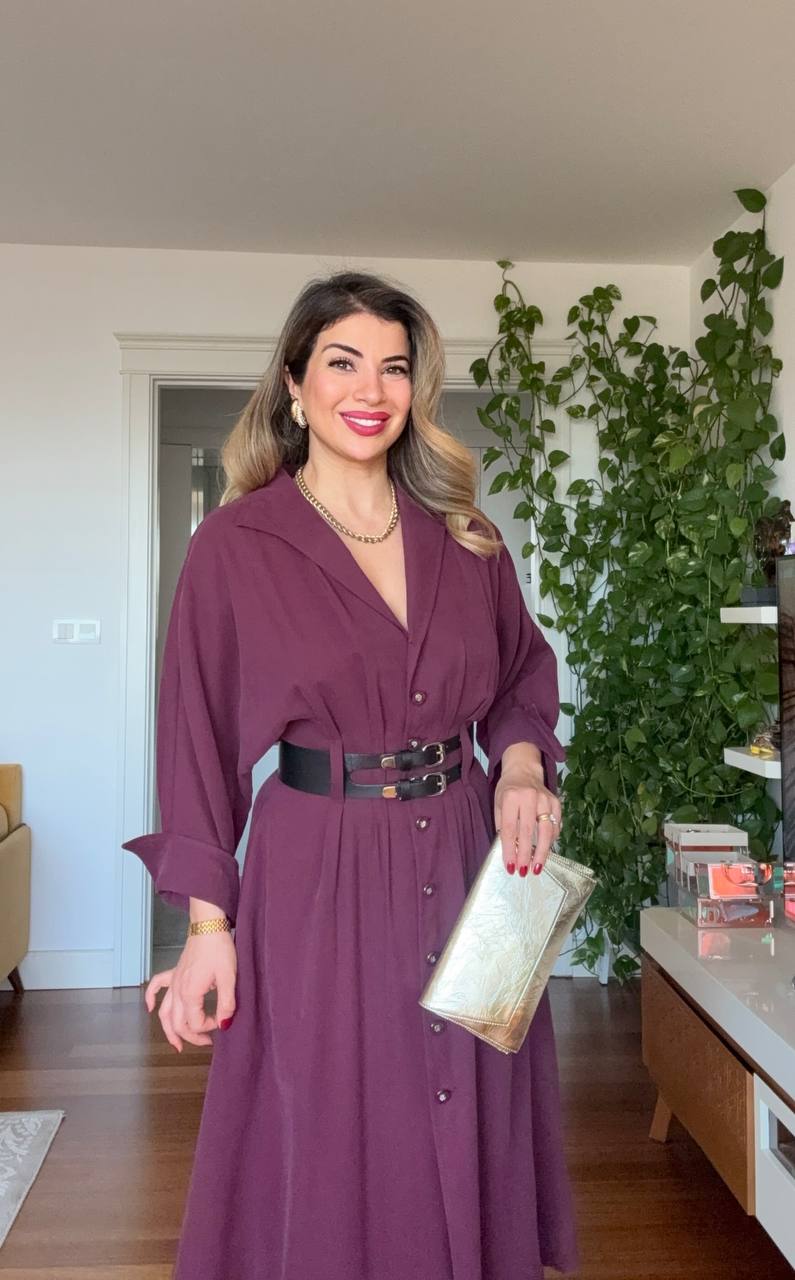 Combining timeless elegance with modern details, the Double Belt Detail Buttoned Midi Dress is designed for women who seek a strong and feminine style. Its fluid fabric and comfortable fit provide all-day comfort, while the double buckle belt detail at the waist elegantly highlights the body silhouette.
