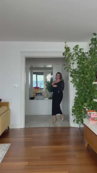 Elegance meets simplicity in this stunning midi dress, perfect for special occasions and elegant gatherings. The draped wrap detail at the waist and the delicate stone buttons create a refined, feminine silhouette. The chiffon puff sleeves add a touch of romantic charm, while the soft stretch lining ensures comfort throughout the day.