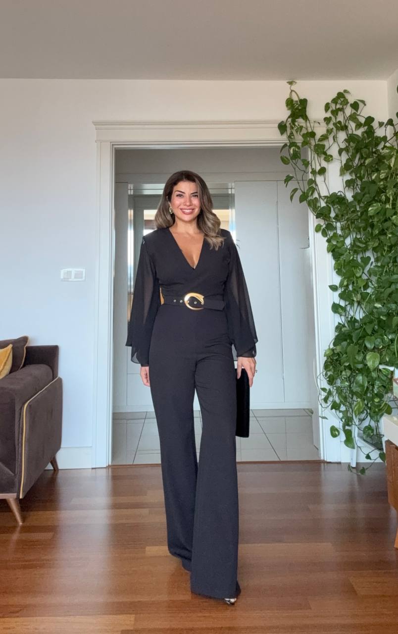 A timeless interpretation of modern elegance, this black jumpsuit offers a sophisticated design that makes you stand out at special occasions, business dinners, and every stylish moment in between.