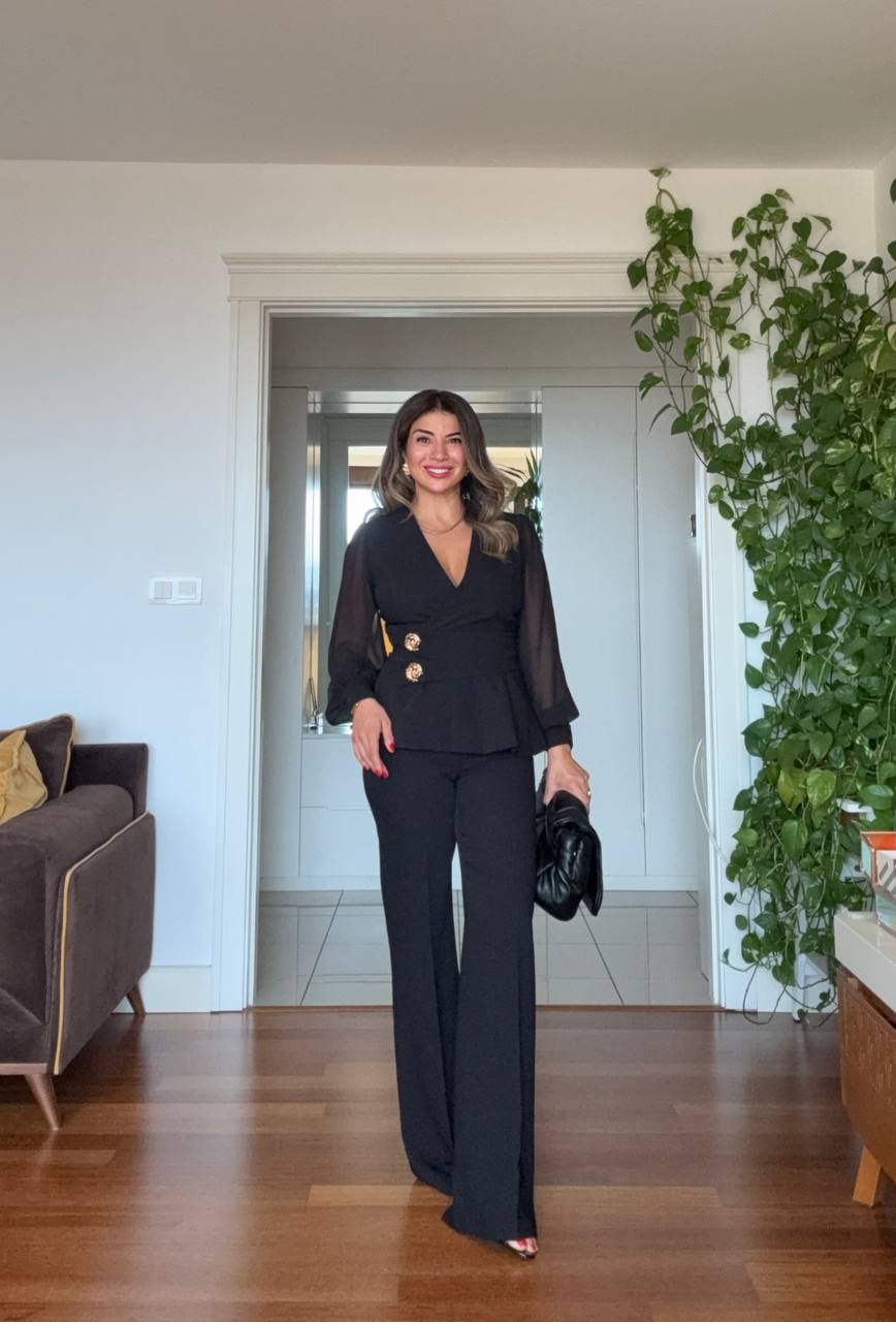 Combining elegance and sophistication with modern details, this black suit highlights your style from special occasions to business events.