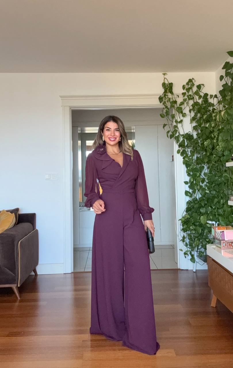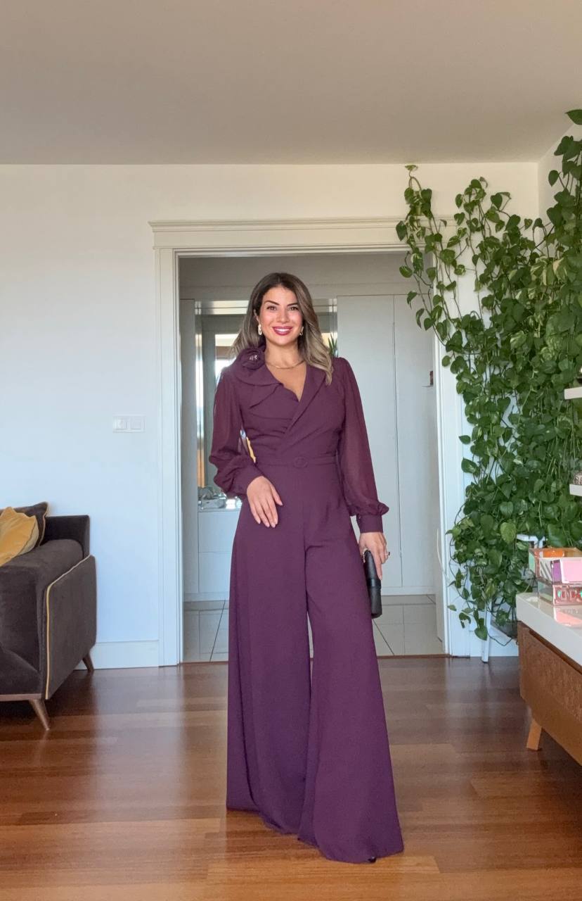 Bringing timeless elegance together with a modern touch, this purple jumpsuit highlights your style at any occasion, from special celebrations to evening events.