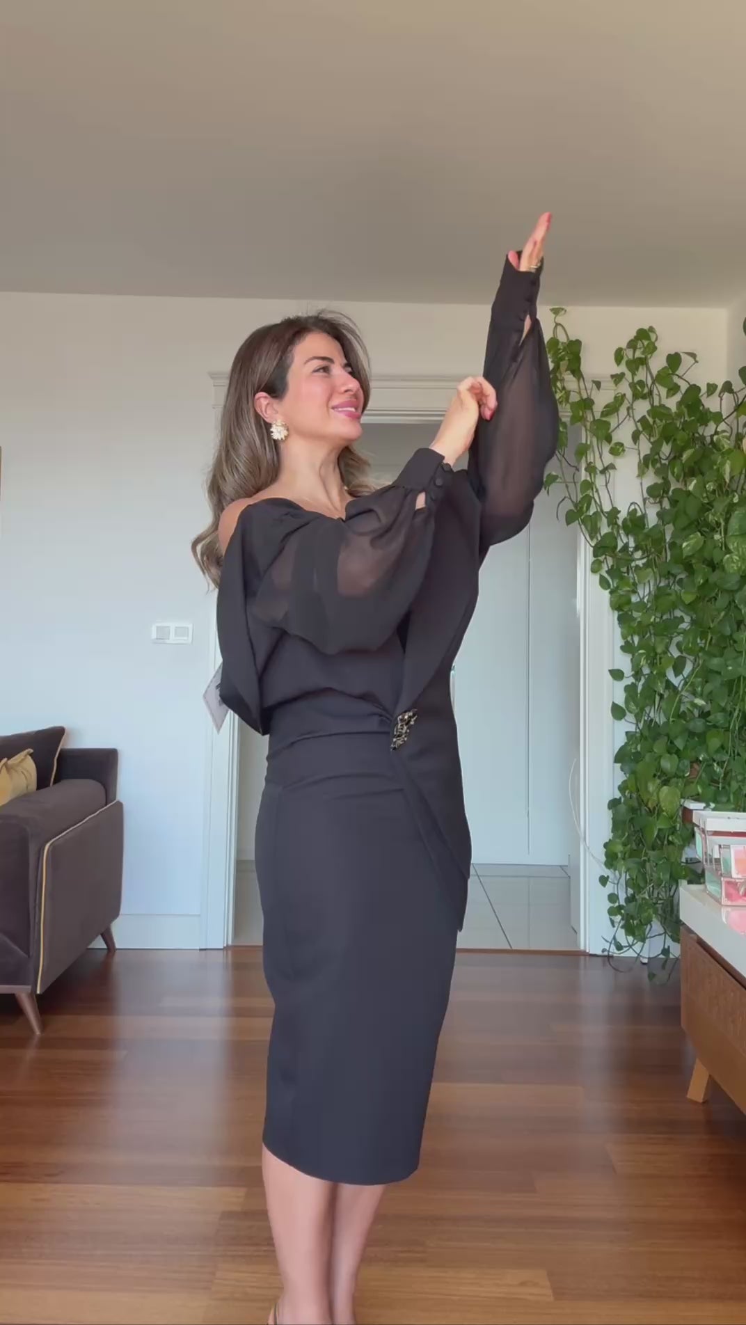 This elegant black midi dress perfectly combines sophistication and style, making it an ideal choice for special occasions and events.