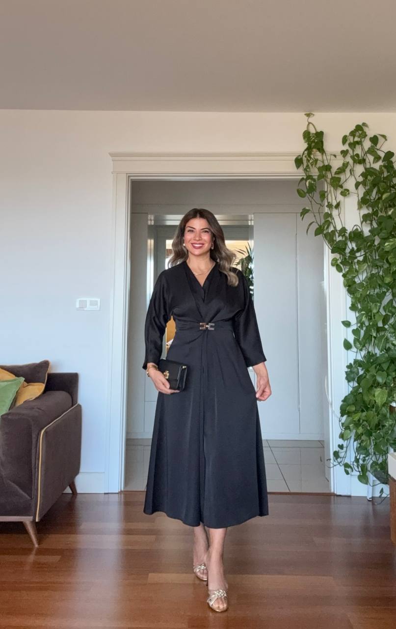 Elevate your elegance with this midi dress featuring a gold buckle detail in timeless black. Designed for women who want to shine with sophistication, this piece effortlessly blends comfort and style.