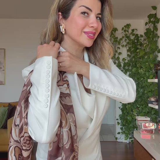 - Unique shoulder shawl detail for a sophisticated, signature look