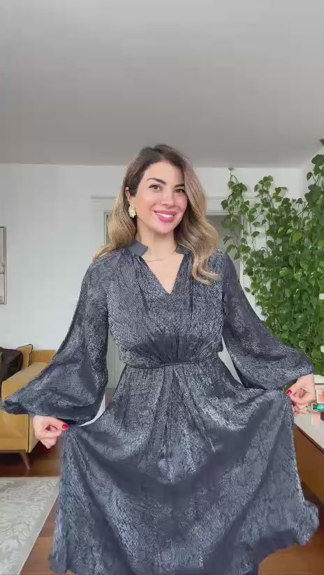Elegant and timeless, the Shiny Satin Balloon Sleeve Midi Dress brings sophistication to every occasion. Made from lustrous satin fabric, it offers both comfort and a refined shine. The statement balloon sleeves and fitted waist create a flattering, feminine silhouette that moves gracefully with you.