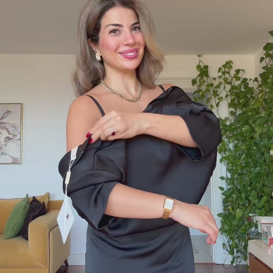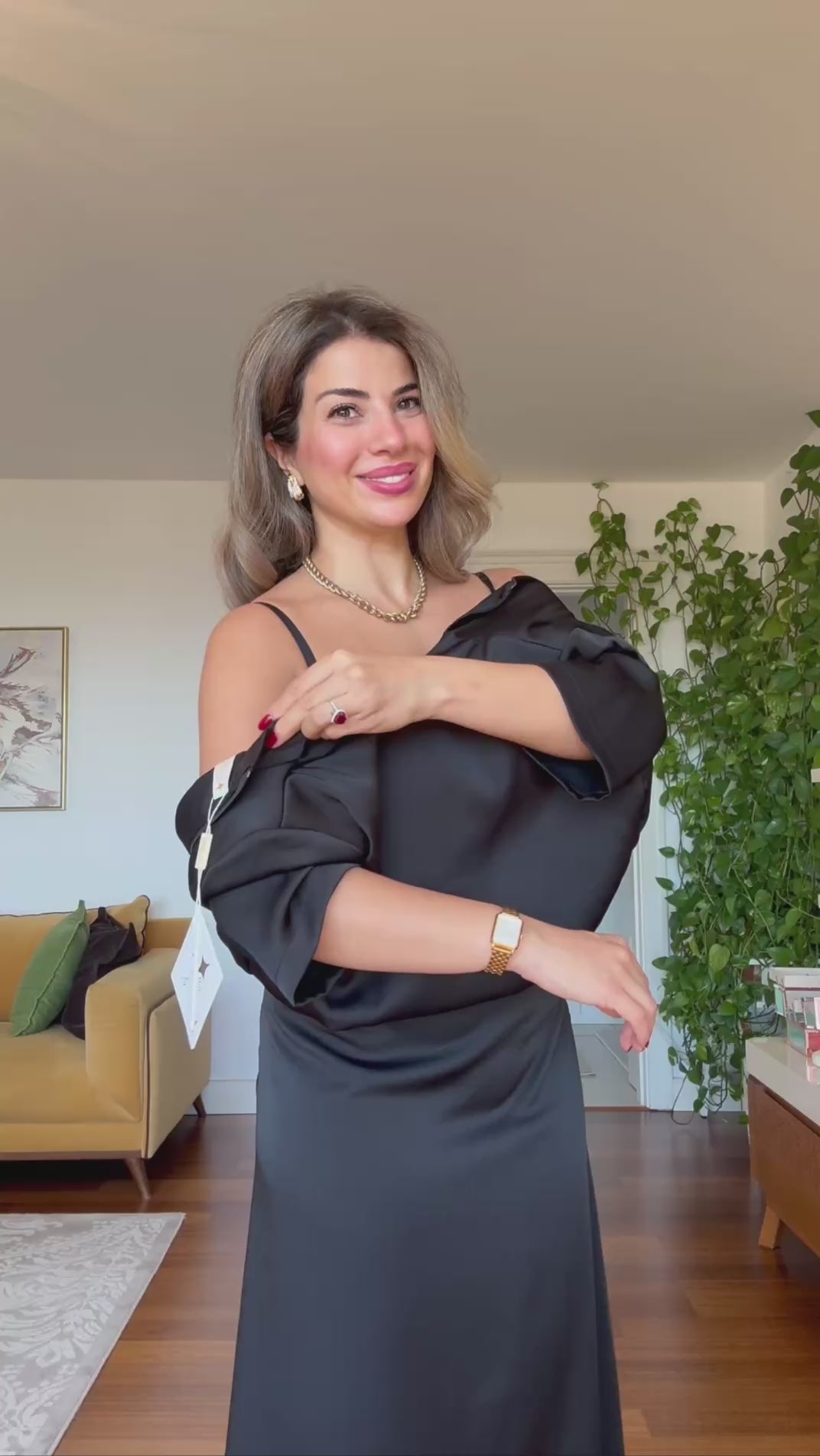 This elegant satin midi dress combines timeless sophistication with a modern silhouette. Made from glossy satin fabric that gently drapes over the body, it features a chic belt detail at the waist for a refined touch.