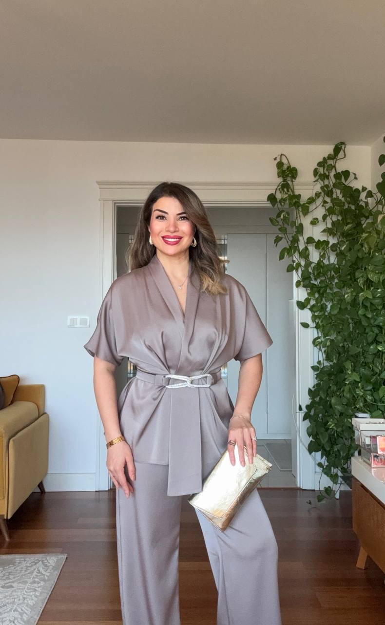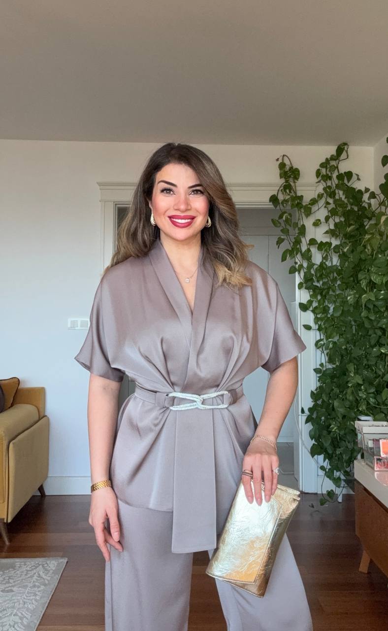 Designed for women who want to shine at every moment of the day, this satin two-piece set is poised to become a favorite piece in your wardrobe. With its fluid fabric and modern cut, it offers effortless elegance for both special events and chic dinners.