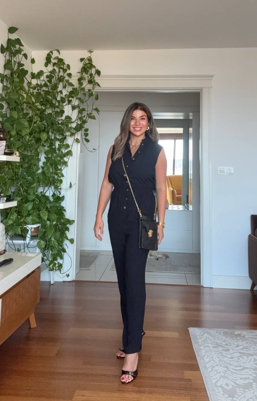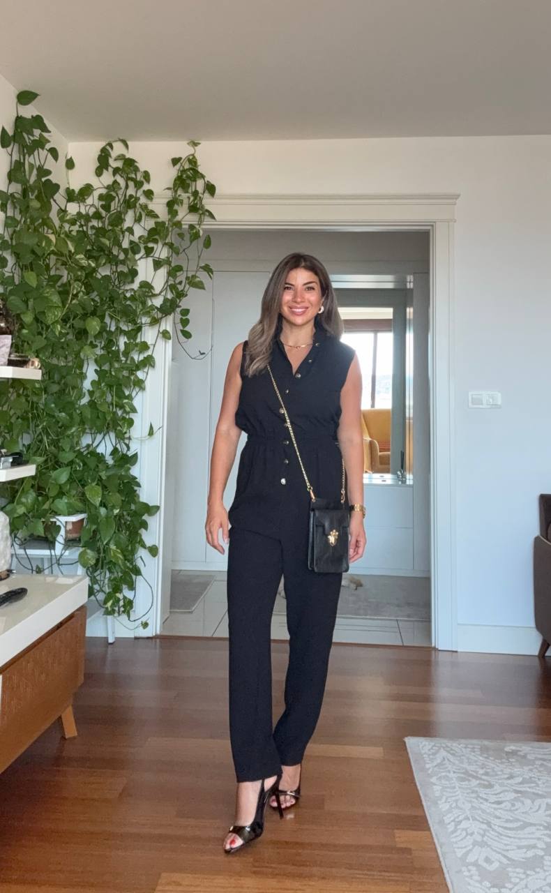 Combining everyday elegance with modern style, this black jumpsuit set highlights your silhouette with its minimal yet striking details. The sleeveless cut and elegant collar offer a breathable and comfortable wear during the summer months, while the elasticated waist provides both comfort and a flattering fit.
