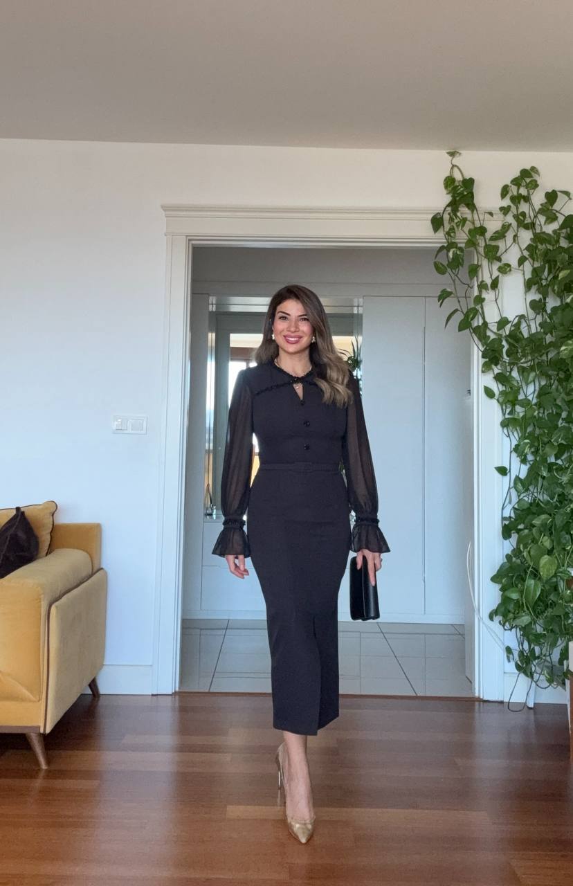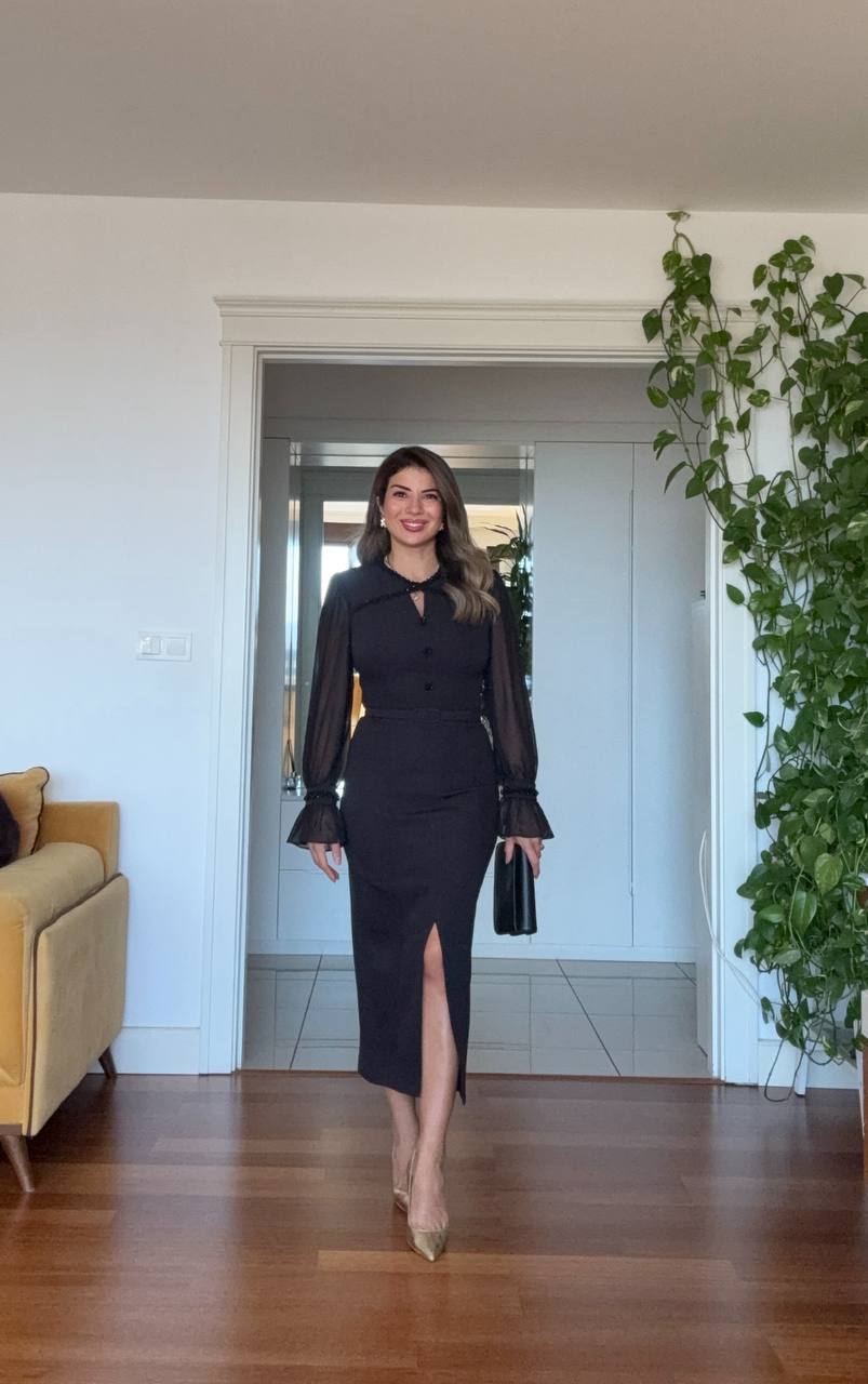 With its elegant details, the Stone Embellished Slit Dress – Black elevates your style to the next level for special occasions and evening events.