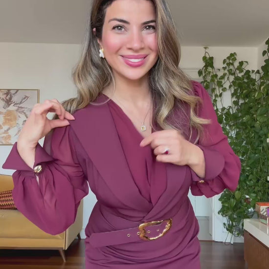 Timeless elegance meets modern details with this burgundy dress, designed to highlight your sophisticated style in any setting.