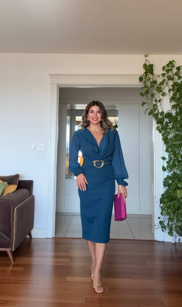 Timeless elegance meets modern details with this petrol blue dress, designed to highlight your sophisticated style in any setting.