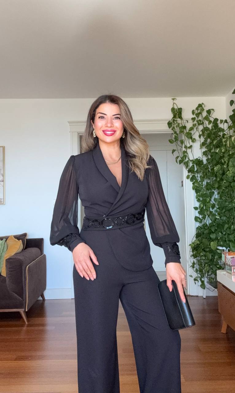 Blending the timeless elegance of black with a modern touch, this chic jumpsuit highlights your style from special events to business dinners.